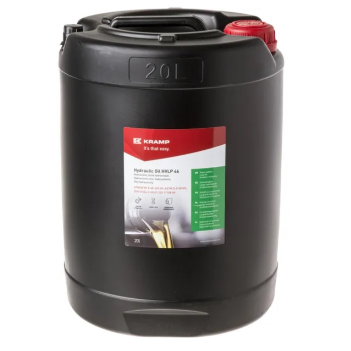 Kramp Hydraulic Oil HVLP 46 on korkea viskositeetti-indeksi ja soveltuu kaikkiin korkealla paineella toimiviin hydrauliikkajärjestelmiin sekä järjestelmiin, joissa esiintyy huomattavia lämpötilavaihteluja.