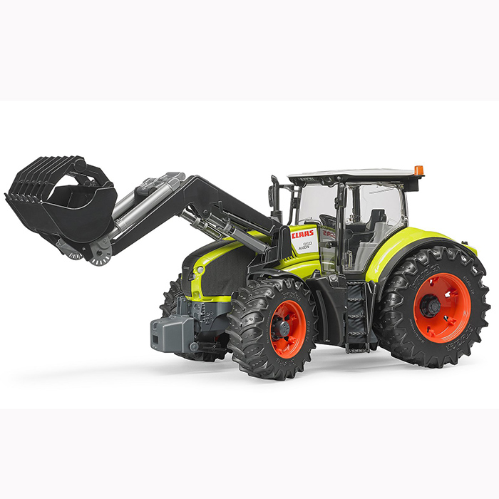 Bruder Claas Axion 950 etukuormaajalla. Bruder Claas Axion 950 on saanut mallinsa huippuluokan traktrorilta, jonka suunnittelu on ainutlaatuista. Bruderin versio on kuten alkuperäinen, jossa kiinnitetään paljon huomiota yksityiskohtiin. Tässä lelutraktorissa on korkea lujuus ja laatu ja sillä on helppo leikkiä. Mallissa on myös Bruderin lelutraktoreille tyypilliset ominaisuudet, kuten ohjattava etuakseli ja korkeussäädettävä takakytkin, minkä tahansa Profi- sarjan perävaunun kiinnitämistä varten. Ohjaamo on täysin lasitettu ja siinä on helposti avattavat ovet. Taitettava konepelti antaa kuvan vaikuttavasta moottorista. Lisäksi tässä Bruder- lelutraktorissa on mukana uusia toimintoja, kuten etuosassa kiinnitysmahdollisuus lisävarusteille ja uudelleenkehitetyt akselit irrotettavilla pyörillä.