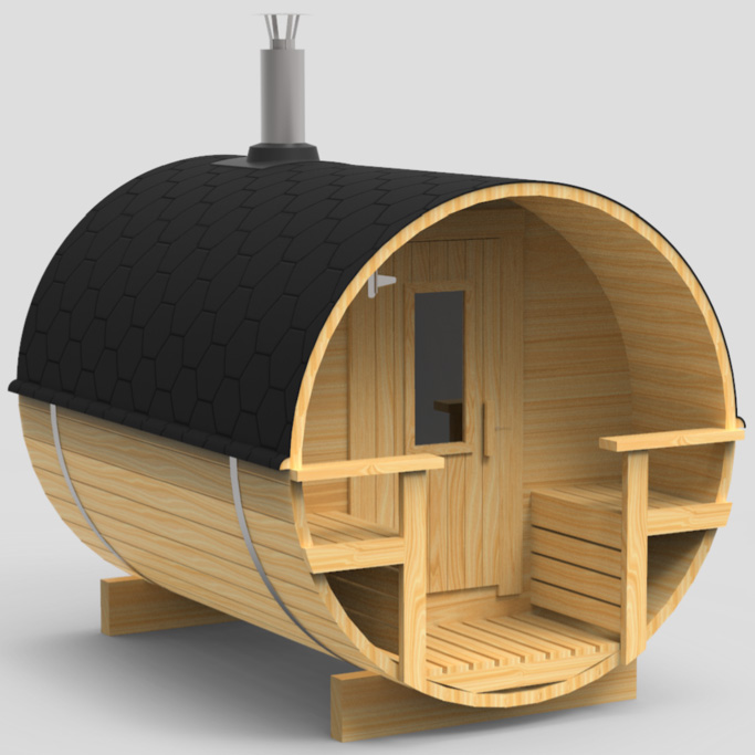 Lakkapäältä sympaattinen tynnyrisauna - puusauna mökille tai kotipihaan! Tämä tynnyrisauna koostuu löylyhuoneesta ja terassista. Pihasauna on helppo ja nopea ratkaisu saunatontun uudeksi kodiksi ja löylynheittäjiä lämmittämään. Tynnyrisaunaa voi mainiosti käyttää vuoden ympäri, eikä sen lämmittäminen sopivaan saunomislämpötilaan kestä talvellakaan kauaa. Tynnyrisauna on helppo ja nopea ratkaisu saunatontun uudeksi kodiksi. Puuosatoimituksen kokoat näppärästi omin voimin ja laihialaisin opein varustat saunasi esimerkiksi isomummon perintökiukaalla -tähän toimitukseen kun ei kiuasta tai piippua kuulu! Tynnyrisauna 24:ssa on saunan pituuden verran tilaa pötkötellä lauteilla ja nauttia saunan lämmöstä. Tuotteemme on valmistettu Suomessa, Laihialla.