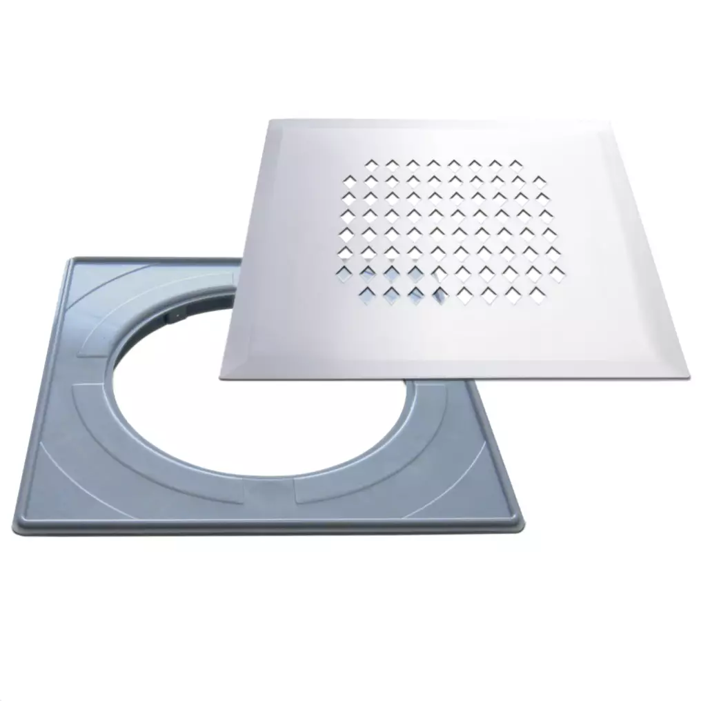 Pakkaus sisältää muovisen (ABS) asennuskehyksen, joka on helppo asentaa lattiakaivon päälle laatoituksen yhteydessä. Kansi istuu täydellisesti kehyksen päälle ja on nostettavissa ylös esimerkiksi siivouksen yhteydessä. Kehysasennuksen jälkeen kansimallia voi vaivattomasti vaihtaa.