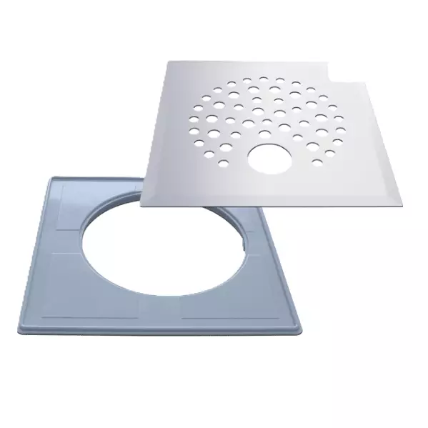 Kannessa on reikä viemärin poistoputkelle. Pakkaus sisältää muovisen (ABS) epäkeskon asennuskehyksen, joka on helppo asentaa lattiakaivon päälle laatoituksen yhteydessä. Se ratkaisee myös työläät laattajako-ongelmat. Kansi istuu täydellisesti kehyksen päälle ja on nostettavissa ylös esimerkiksi siivouksen yhteydessä. Kehysasennuksen jälkeen kansimallia voi vaivattomasti vaihtaa.