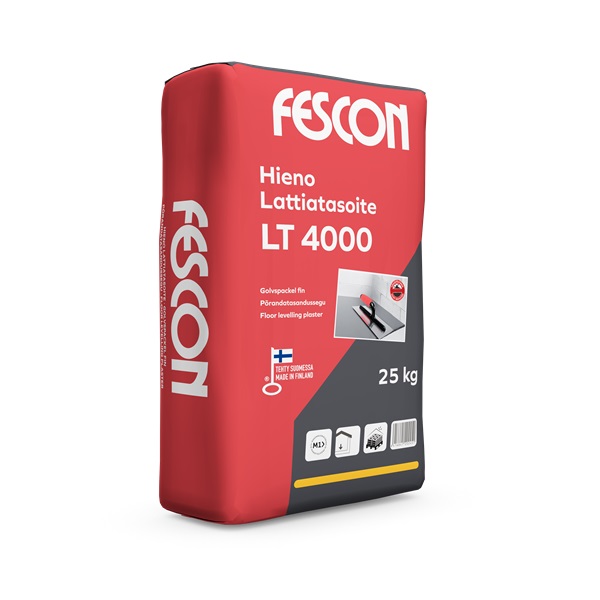 Lattiatasoite Fescon LT 4000 20kg, 20203 Hieno, Harmaa, Nopeasti Kovettuva. Fescon LT 4000 on erikoissementtisideaineinen, helposti tasoittuva, nopeasti kovettuva ja kuivuva kaseiiniton käsitasoite.... Lue lisää