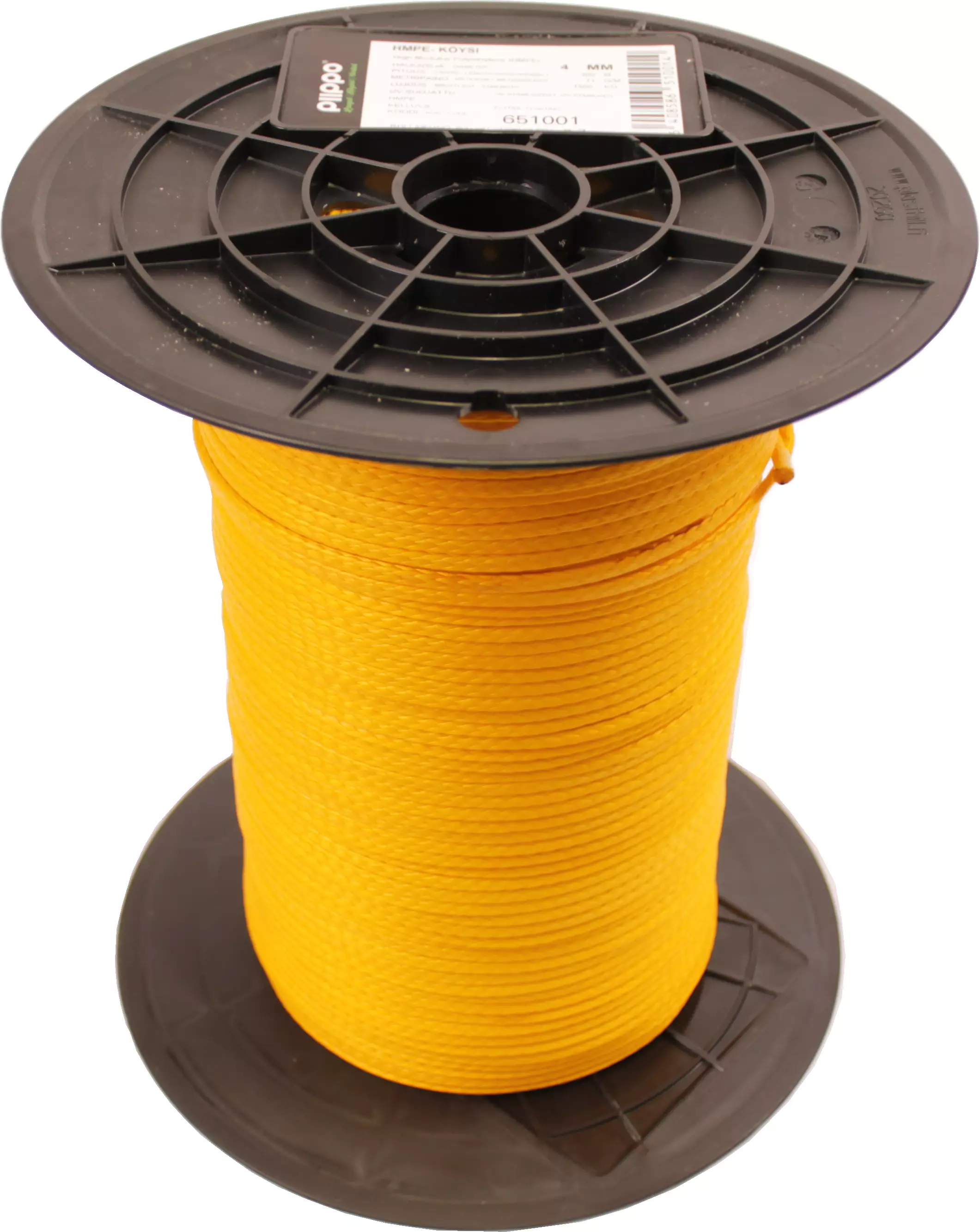 -Pakkauksessa on 300 metriä 4mm paksua kelluvaa keltaista HMPE -köyttä, jonka murtolujuus on 1500kg!