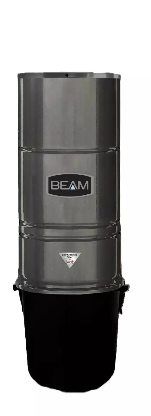Beam E 200-maskinen har Hybrid Gore-filter, vilket innebär att maskinen har Goretex-filter och en förinstallerad dammsugaradapter + dammpåse. Maskinen kan även användas utan dammpåse, vilket innebär att skräpkärlet töms några gånger om året. E 200-maskinen har en svart 15 l skräpkärl. Maskinens installationsplats måste ha en temperatur på minst +5 °C. Kompatibel med Deluxe städuppsättningar och slangar.
