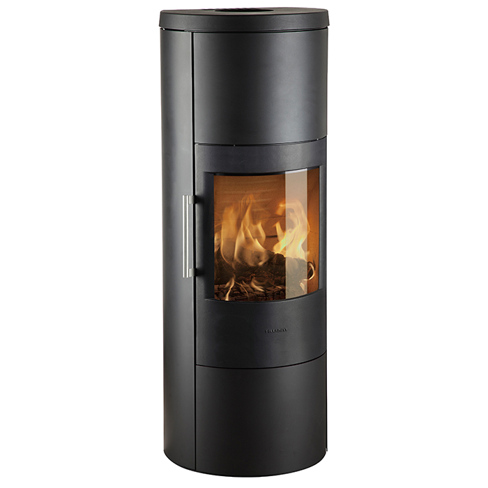 Dansk kamin / färdig kaminlösning med konvektion. Kamin med Autopilot-funktion. Klassisk lucka med karm av gjutjärn. Kaminen finns i svart och grå.