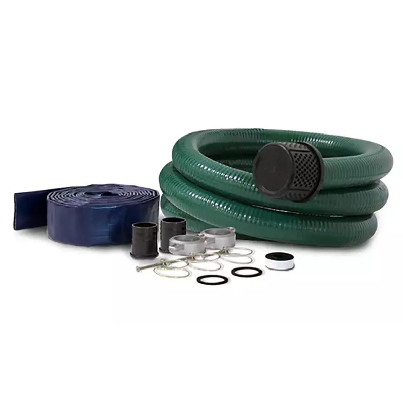 Används med rena och smutsiga vattenpumpar med 5cm/2in NPT-gängförbindelse. Setet innehåller 3,7m förstärkt PVC-inloppsslang samt 7,6m PVC-utloppsslang med tillbehör. Snabb och enkel installation.