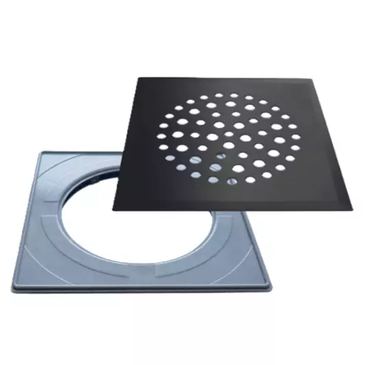 Golvvattensil 669 Med Ram, Matt Svart Rostfritt 197X197mm