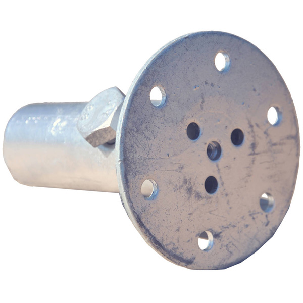 Plattkonsol för skruvpåle. Universalmodell på plattkonsol för Järnvik skruvpålar, för många olika ändamål. Det finns sex monteringshål i fästet, till exempel för att fästa ett ramvirke. Innehåller en monteringsbult och en mutter som förankrar fästet i skruvpålens monteringshål. Flänsens diameter är 120 mm och tjockleken är 4 mm. Storleken på monteringshålen är 10 mm.