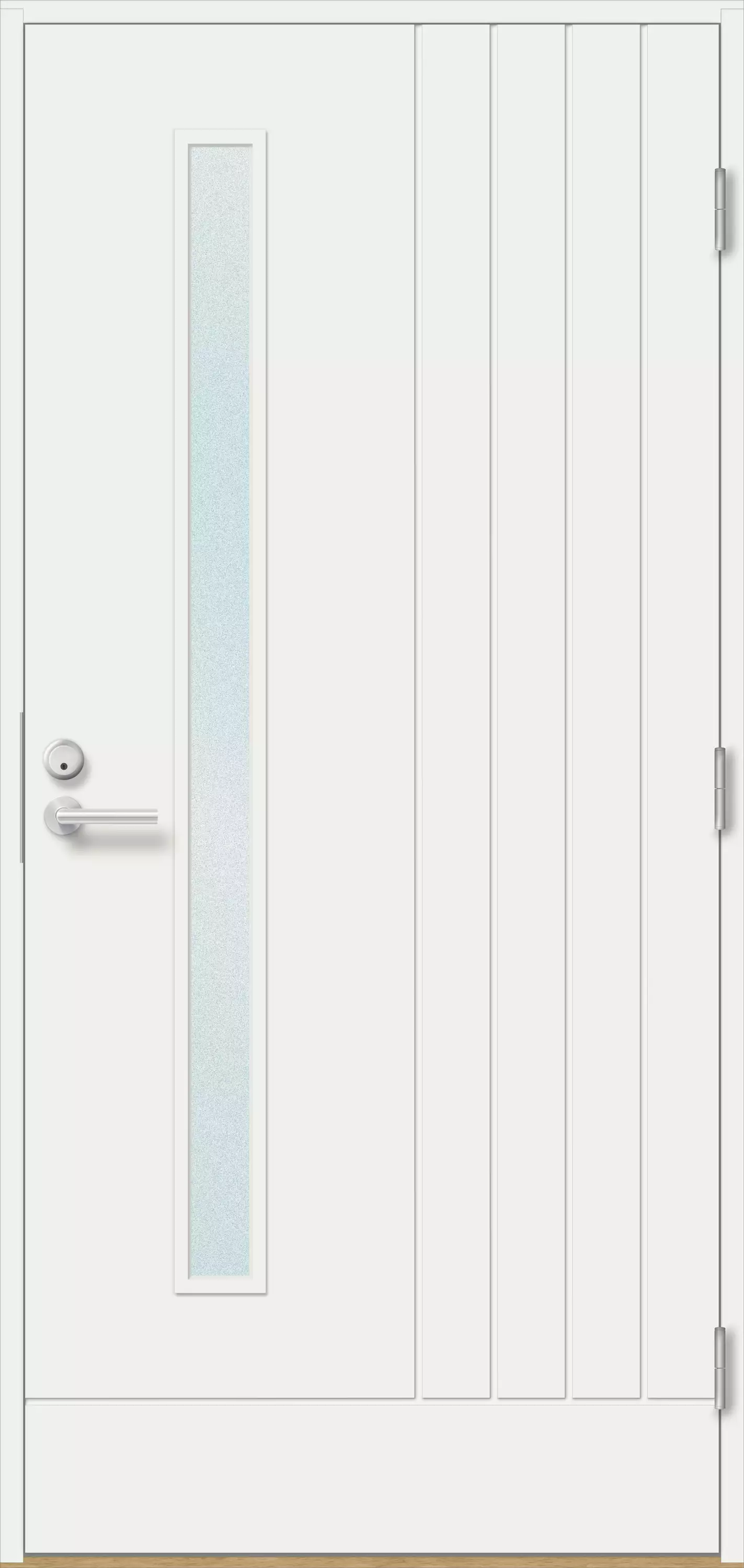 Henni är en modern ytterdörr som står emot tidens tand och varierande väderförhållanden. Den smala, höga glaspartiet släpper in naturligt ljus och lättar upp helhetsintrycket, medan den strukturerade ytan ger dörren karaktär. Dörrens aluminiumförstärkta, 78 mm tjocka konstruktion och dubbel tätning håller kylan borta och värmen inne. Henni är designad för hem där man värdesätter energieffektivitet, hållbarhet och kvaliteten av inhemskt arbete.