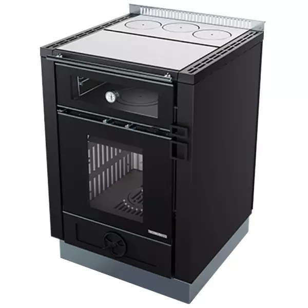 Italienska Thermorossi Aurora 60 är en modern vedspis med vilken du snabbt kan laga mat och värma upp utrymmet. Thermorossi vedspisar har en exceptionellt stor eldstad som rymmer mycket ved. Hällens stålyta har snygg finish.