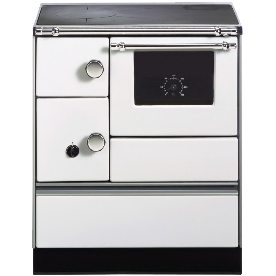 Wamsler Westminster K176 A-70 vedspis värmer mat och vatten riktigt snabbt. Finns i svart och vitt. Ugnen och eldstaden kan väljas till vänster eller höger. Wamsler är en av de största tillverkarna av vedspisar i Europa, det tyska företagets historia går 140 år tillbaka i tiden. Produkterna är kända för att vara särskilt hållbara och tillverkade av högkvalitativa material. Mycket hållbar ram, yta: målad stålplåt med emaljbeläggning: Ugn med termometer, ugnsplåt och galler. Häll sandblästrad och svartmålad stål. Vedspisen kan fästas i skorstenen uppifrån, från sidorna och bakifrån. Veden brinner renare tack vare den sekundära eldluftstillförseln.