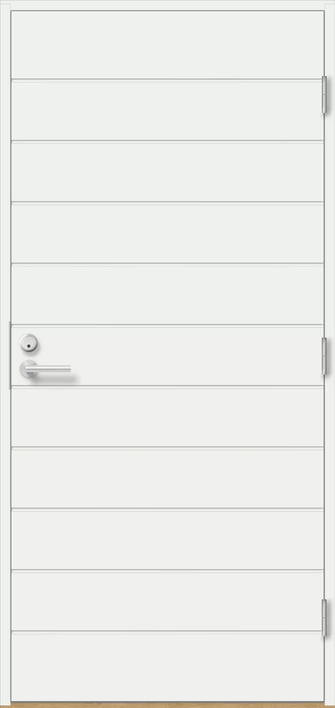 Varpu är en stilren och hållbar vågrätt laminerad dörr som tål tidens tand. Den är designad för hem där hållbarhet och kvalitet från lokalt hantverk värderas. Varpu erbjuder ett prisvärt alternativ för utrymmen som inte kräver den bästa isoleringen, såsom förråd.
