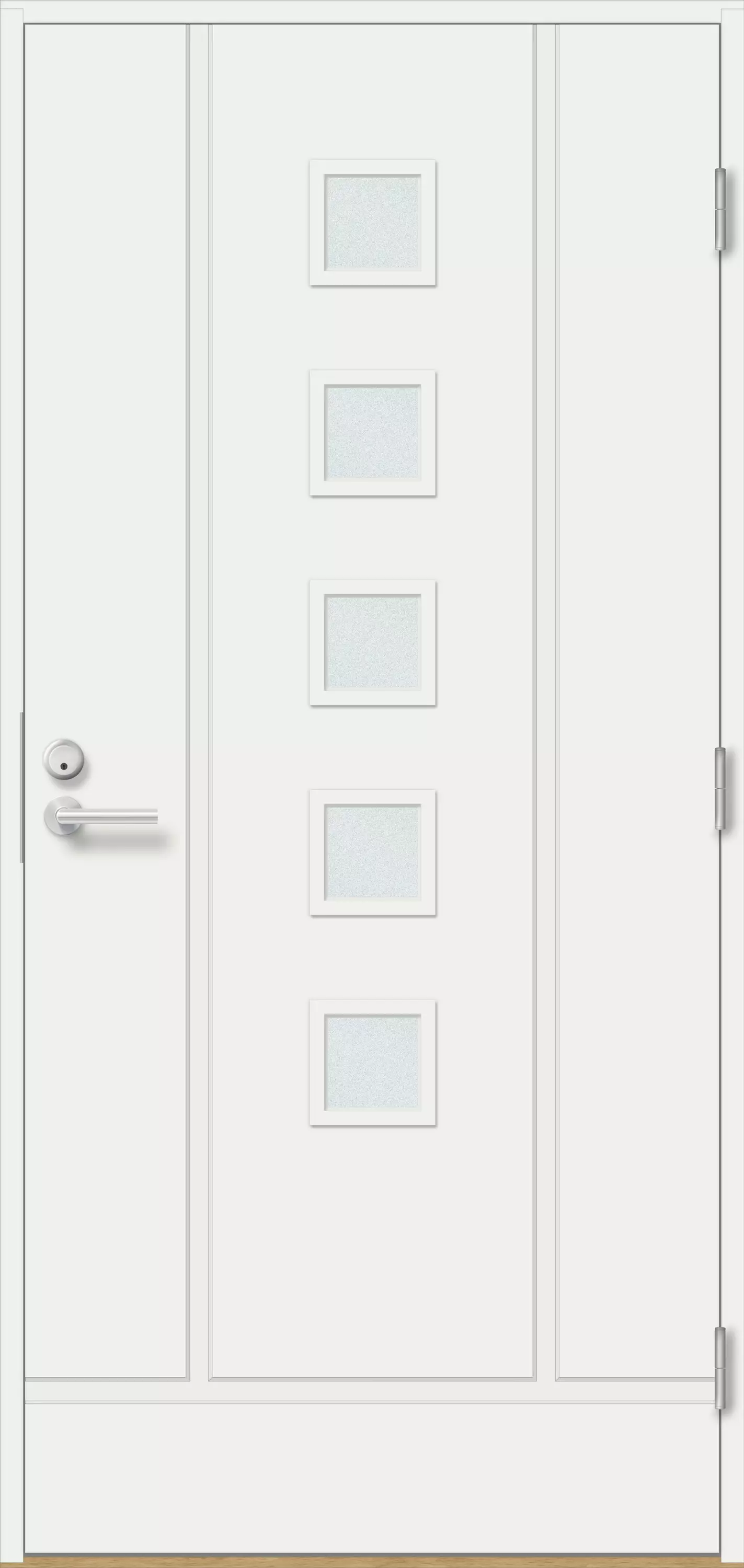 Karin är en harmonisk och tidlös ytterdörr som tål tidens tand och varierande väderförhållanden. Glaspartierna ger dörren ljus och rytm, och de flankerande vertikala spåren framhäver dörrens eleganta linjer. Helheten är lugn men uttrycksfull, vilket gör att Karin passar väl för både traditionella och moderna byggnader. Dörrens aluminiumförstärkta, 78 mm tjocka konstruktion och dubbla tätning håller kylan ute och värmen inne. Karin är designad för hem där man värdesätter energieffektivitet, hållbarhet och finsk arbetskvalitet.