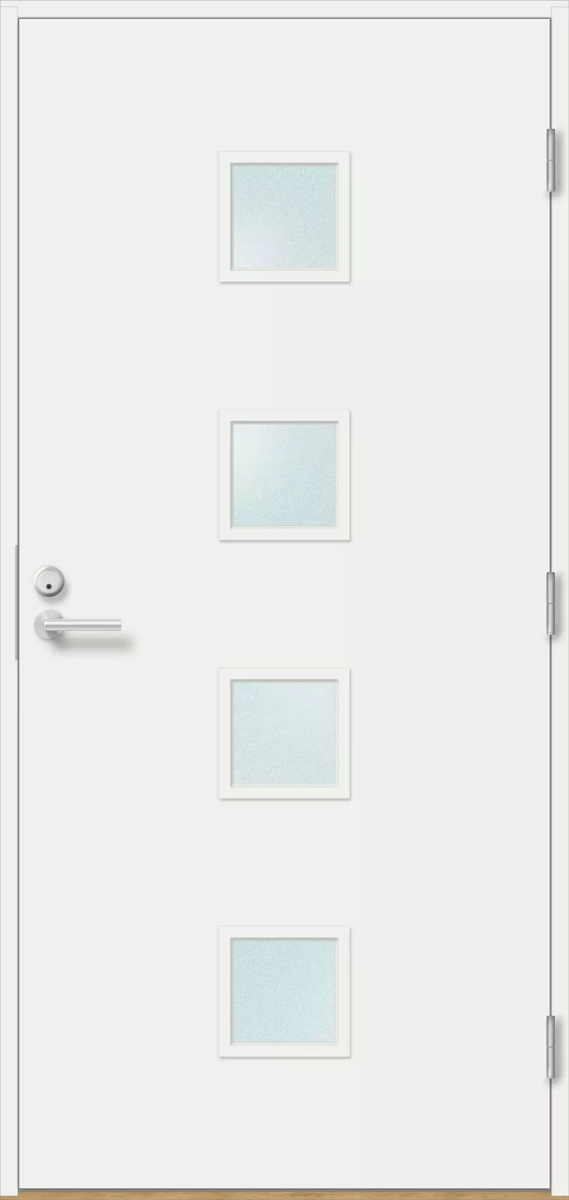 - Tätning: Dubbel tätning, grå 10 mm silikonprofil på dörrbladet och karmen