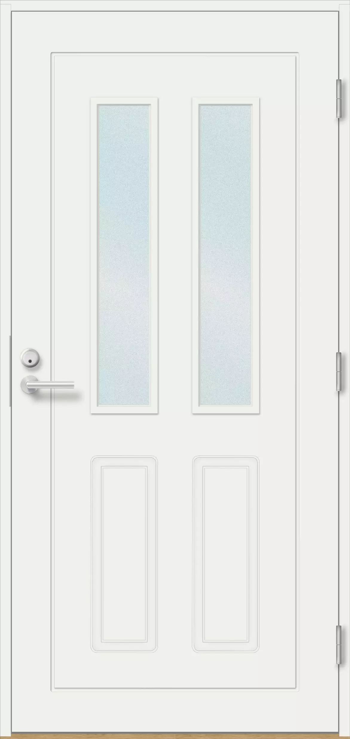 Roosa är en klassiskt vacker ytterdörr som står emot tidens tand och varierande väderförhållanden. Två smala stående glas och en vacker struktur ger dörren en harmonisk och traditionell design. Dörrens aluminiumbelagda, 78 mm tjocka konstruktion och dubbel tätning håller kylan borta och värmen inne. Roosa är designad för hem där energieffektivitet, hållbarhet och kvalitet från inhemskt arbete värderas.