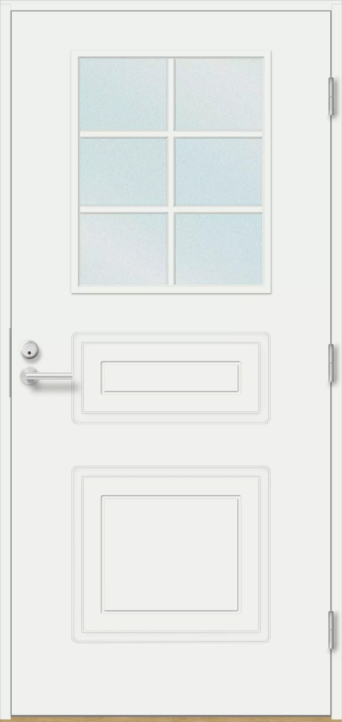 Waldemar är en klassiskt värdefull ytterdörr som tål tidens gång och varierande väderförhållanden. Glaset med 6-rutigt spröjsverk och uringarna på undersidan bildar en iögonfallande men harmonisk helhet som passar särskilt bra för traditionella och hemtrevliga entréer. Dörrens aluminiumförstärkta, 78 mm tjocka konstruktion och dubbla tätningslösningar håller kylan borta och värmen inne. Waldemar är designad för hem där man värdesätter energieffektivitet, hållbarhet och kvalitet från inhemsk produktion.