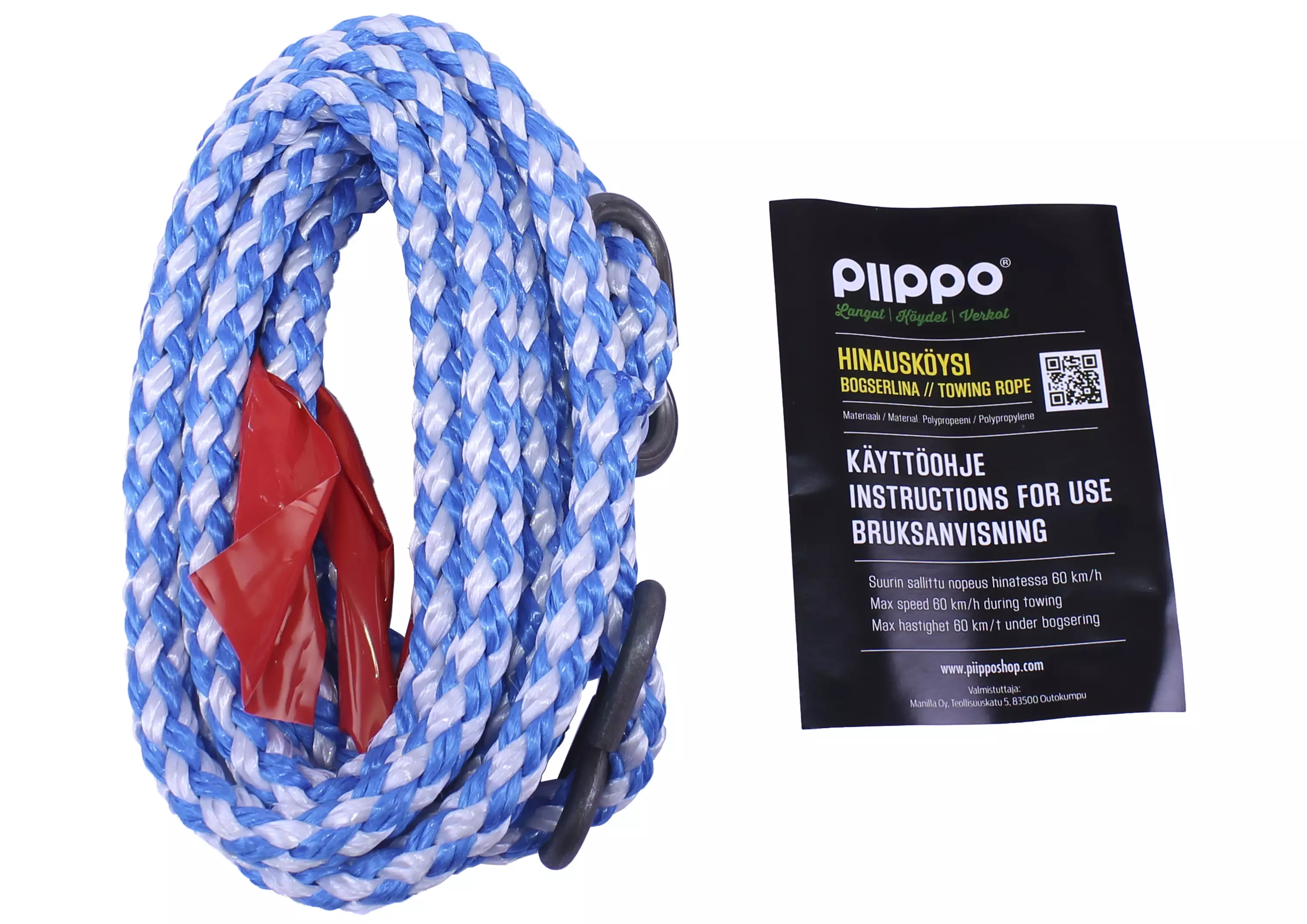När bilen stannar på vägen eller du flyttar ett gammalt fordon kan du använda Piippos bogserlina. Bogserlinan är 14 mm tjockt flätat polypropenrep. Bogserlinorna är tillförlitliga och lättanvända. Omfattande bogseringsanvisningar på flera språk ingår i förpackningen. Använd inte linan för att flytta eller lyfta andra rörliga objekt. Om du vill ha en tjockare bogserlina kan du använda Piippos 18 mm bogserlina för skåpbilar.