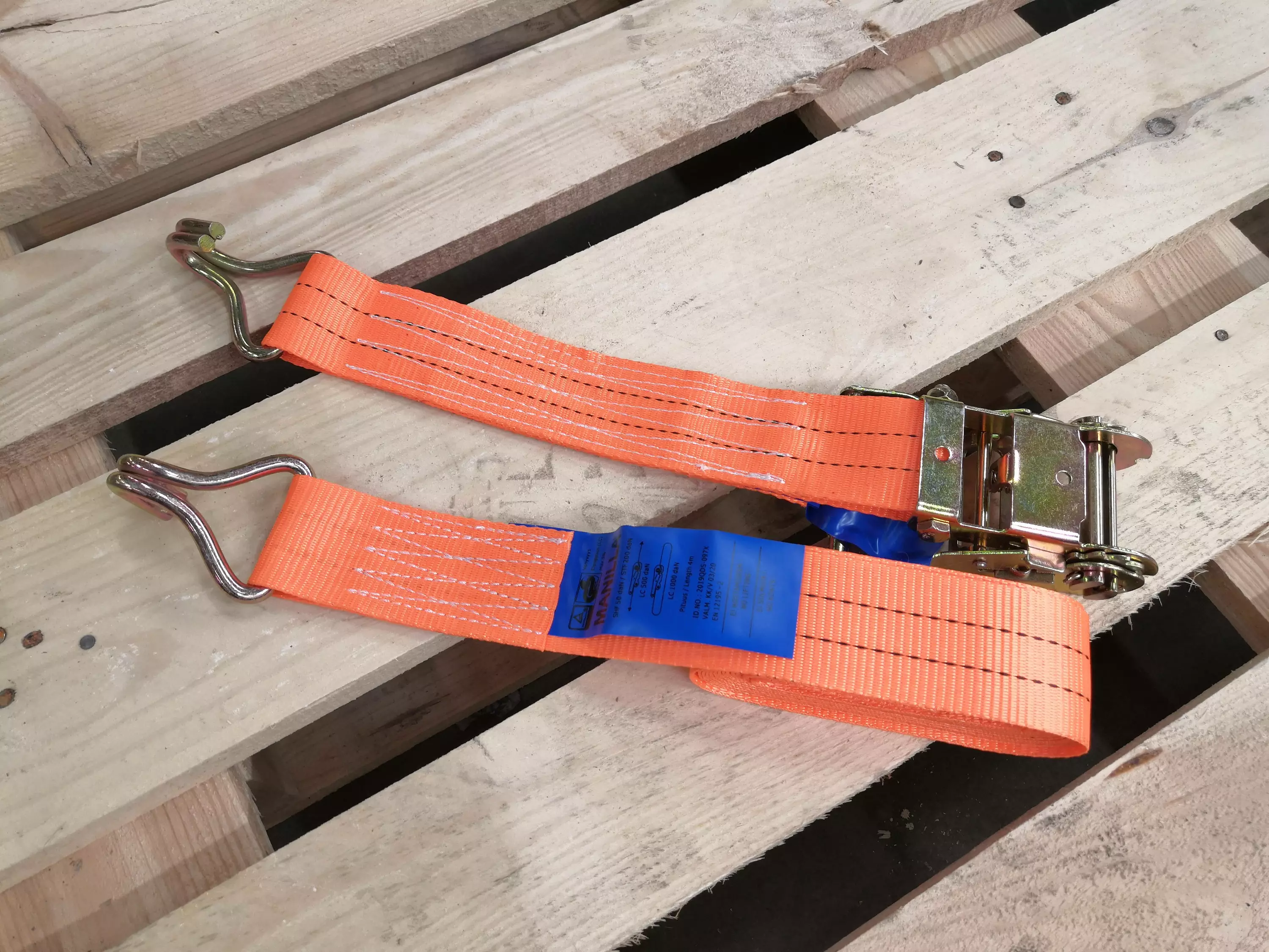 -I ändarna finns krokar för fastsättning vid släpvagnens ringar eller lastsäkringskrokar.