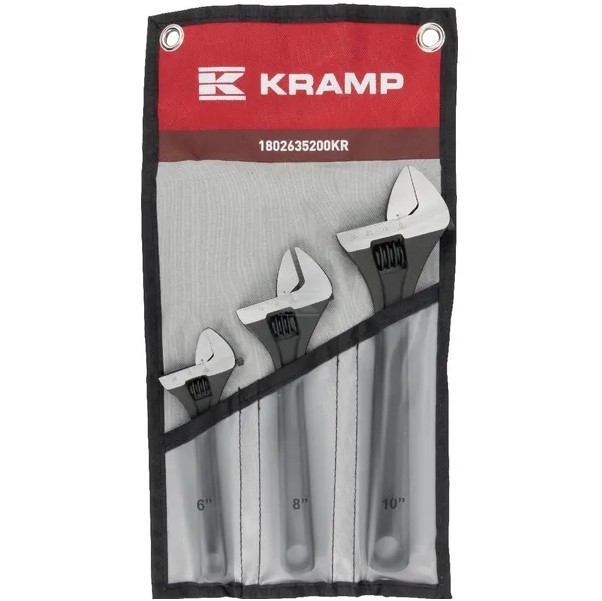 Satsen består av: 6" skruvnyckel 0-24 mm, 8" skruvnyckel 0-28 mm, 10" skruvnyckel 0-32 mm
