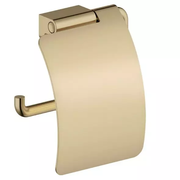 -Elegant toalettpappershållare i borstad mässing. Skyddar och håller det rent. Montering med lim eller skruvar.