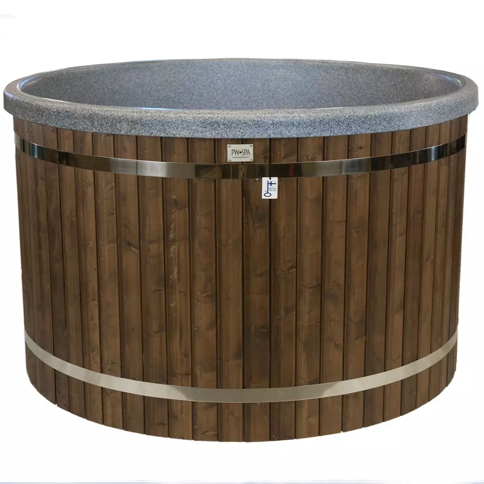 Innertunnan är tillverkad av tålig plast som är lätt att hålla ren. Du kan välja ytterpanel i antingen tidlöst nötbrunt eller elegant svart, medan innertunnan finns i färgerna granit eller mörkgrå. Badtunnan levereras med ett robust lock som hjälper till att effektivisera uppvärmningen.